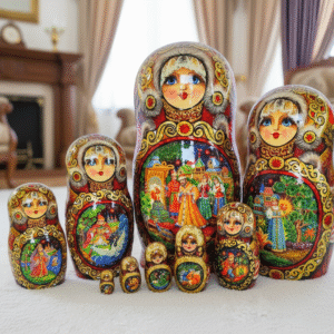 Dòng búp bê Nga Matryoshka cao cấp nhất gồm 10 lớp búp bê lồng vào nhau, có loại dáng cao 26cm và dáng tròn 20cm, họa tiết cực đẹp và sang trọng!