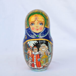 Phần tuyệt vời nhất của những con búp bê matryoshka là những bức tranh được vẽ bằng tay rất đẹp và độc đáo. Các bức tranh của bộ Matryoshka này được vẽ câu chuyện cổ tích dân gian NÀNG CÔNG CHÚA TUYẾT, được đại thi hài Pushkin đưa vào thơ ca. Các câu chuyện cổ tích được vẽ thủ công theo phong cách hội họa truyền thống “Fedoskino” cực đẹp và độc đáo, nét đến từng chi tiết nhỏ nhất.