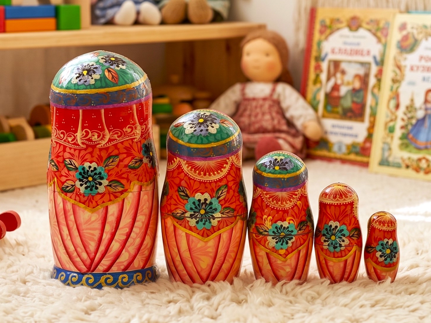 • Kích thước: cao 18cm, gồm 5 búp bê lồng vào nhau