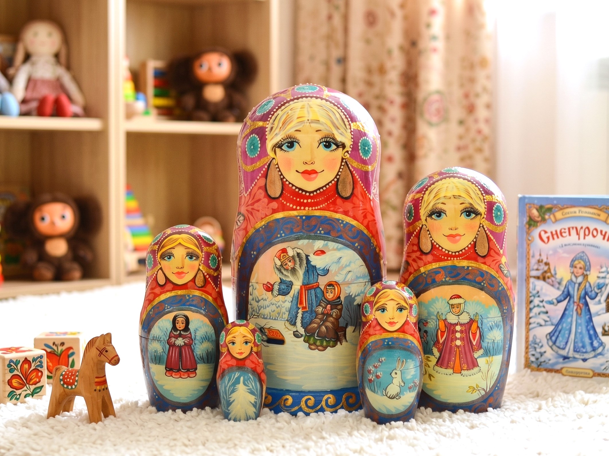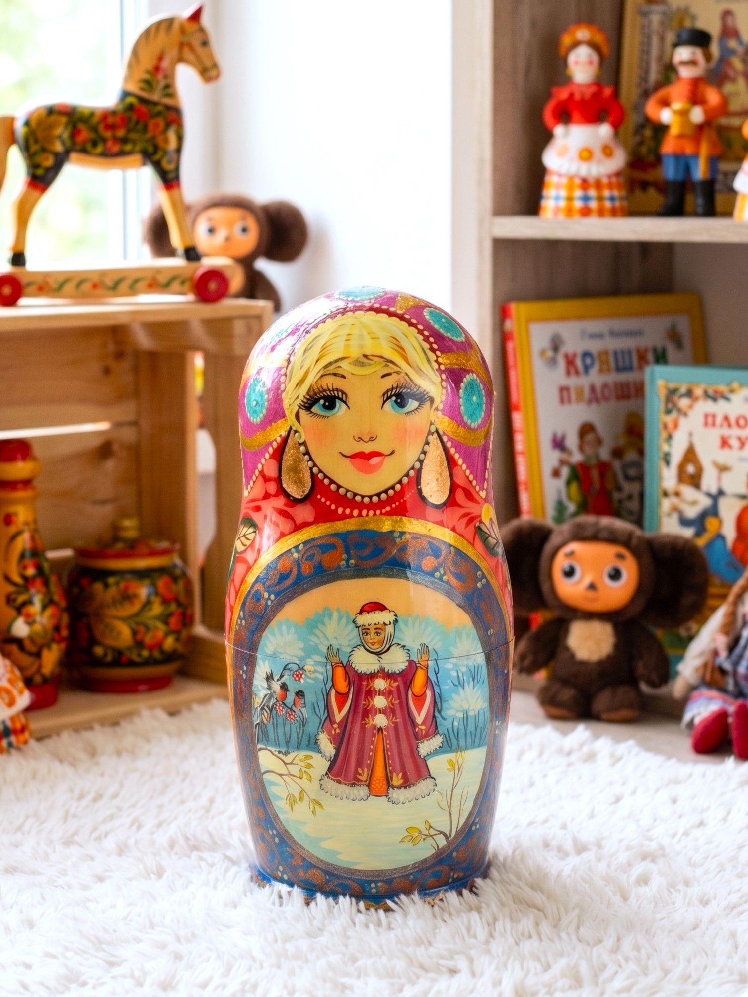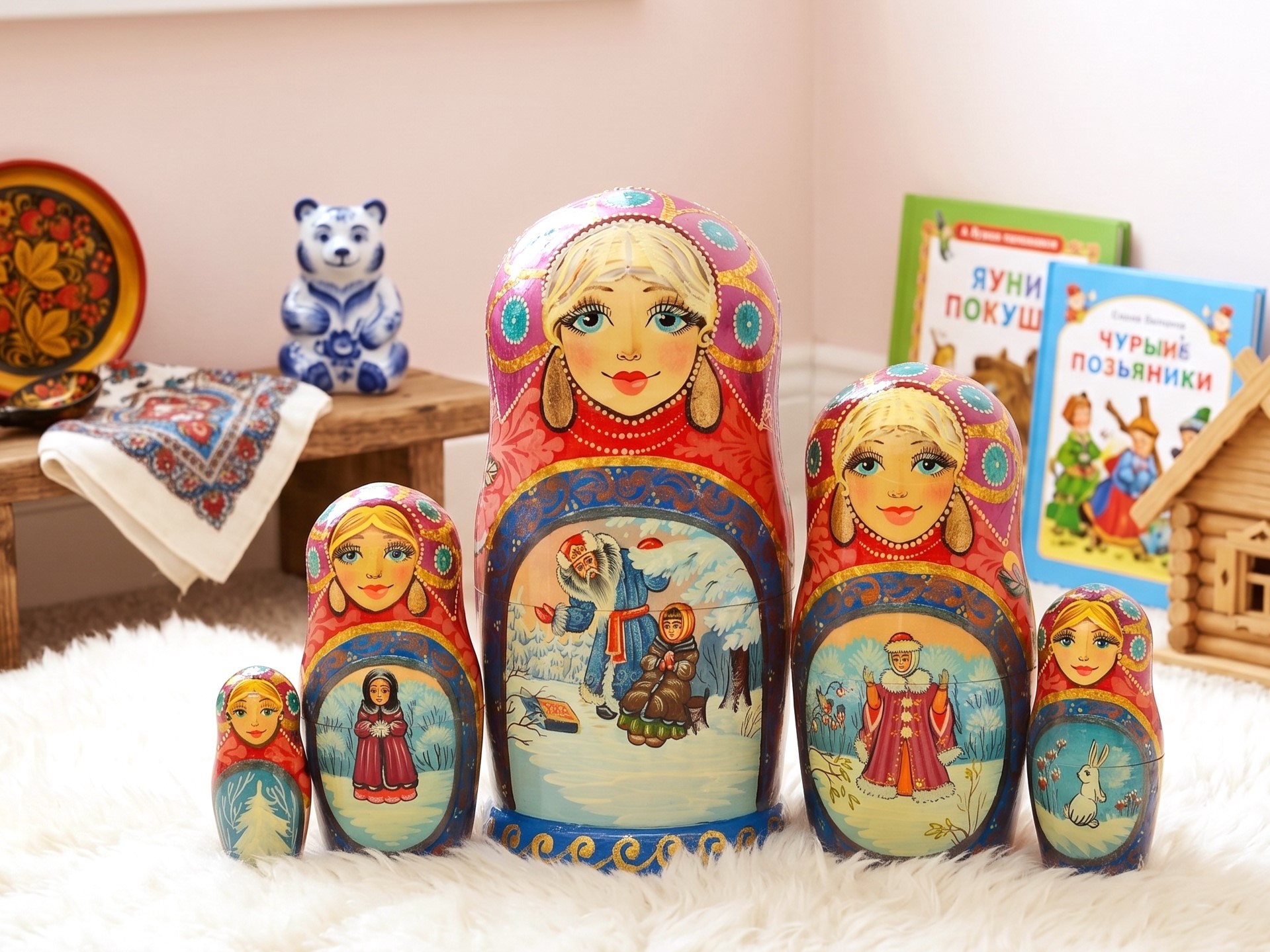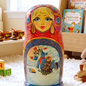 ♥ Bộ búp bê Nga Matryoshka dòng cao cấp 5 lớp cao 18cm hoa văn chuyện cổ tích “Nàng công chúa Tuyết” rất đẹp và dễ thương: