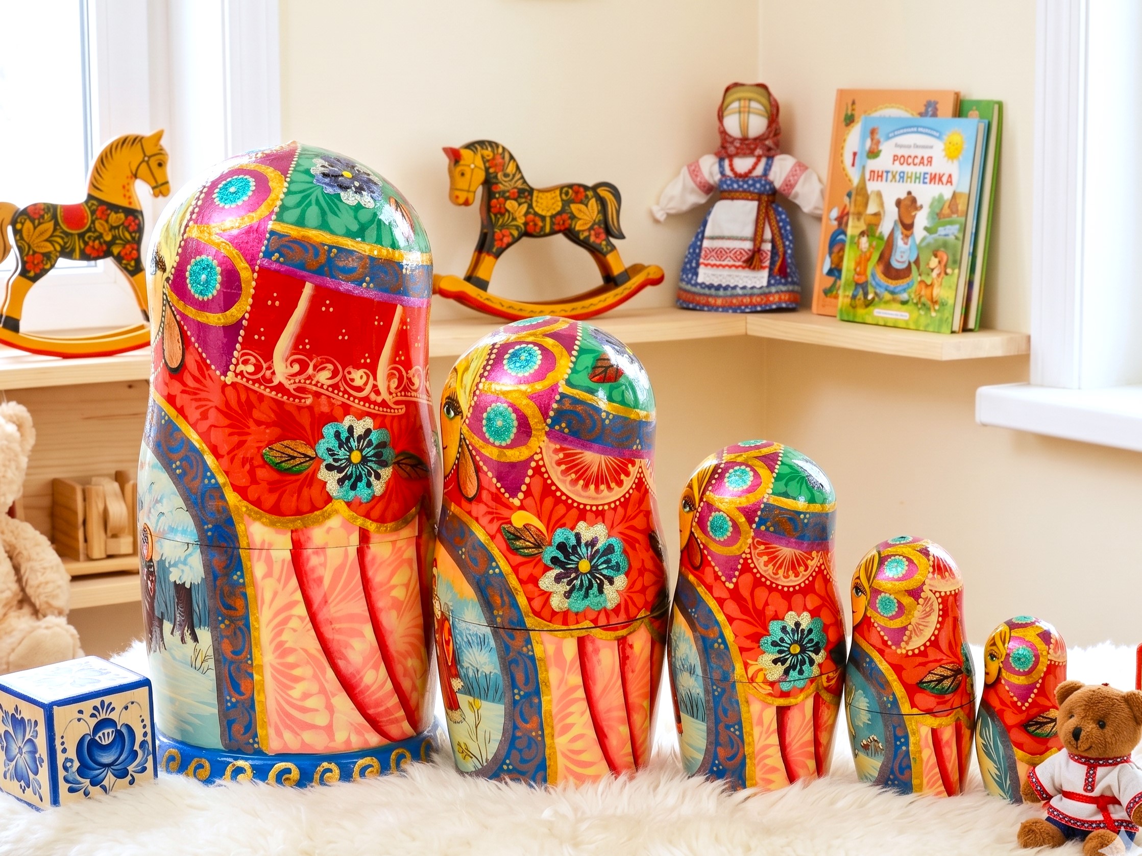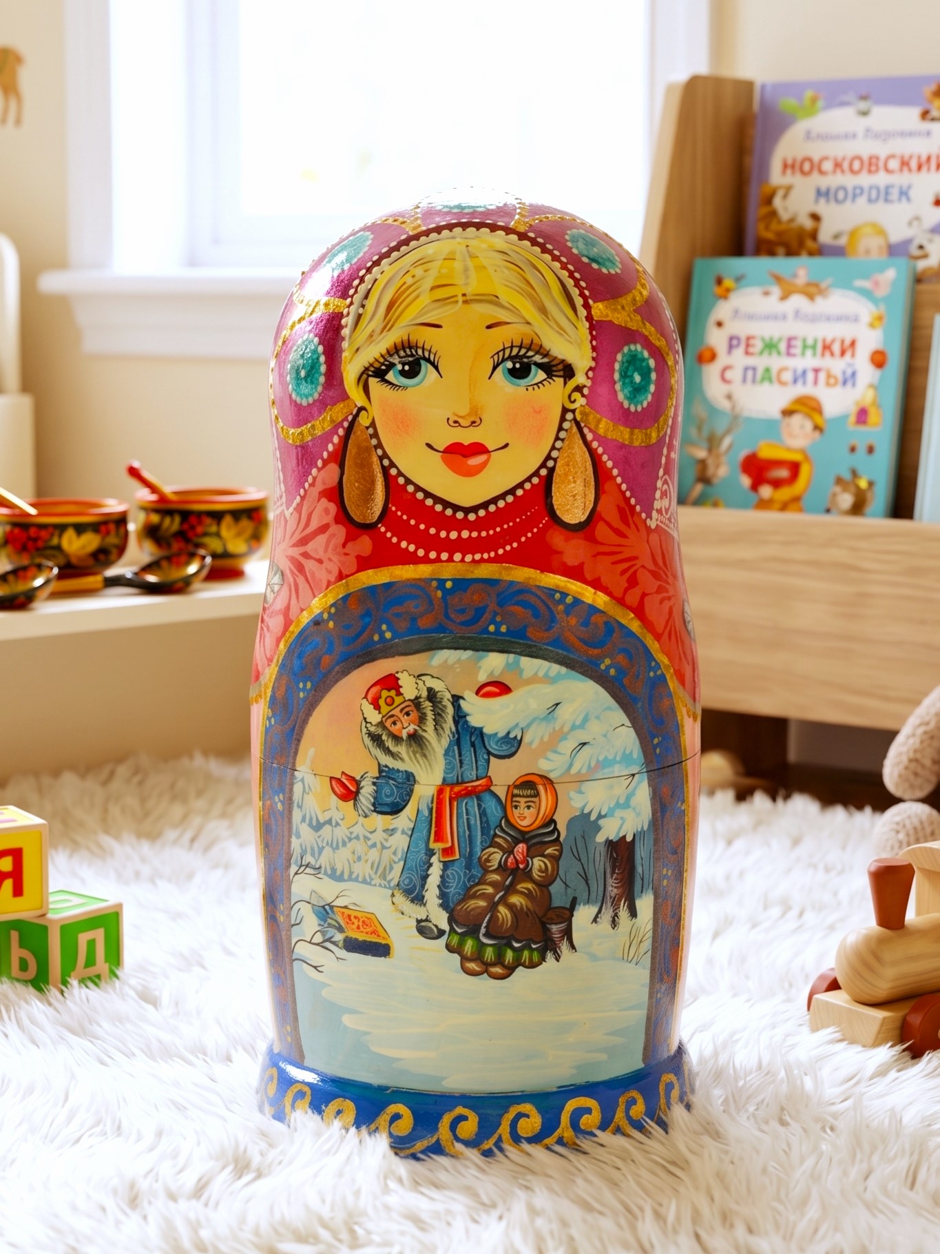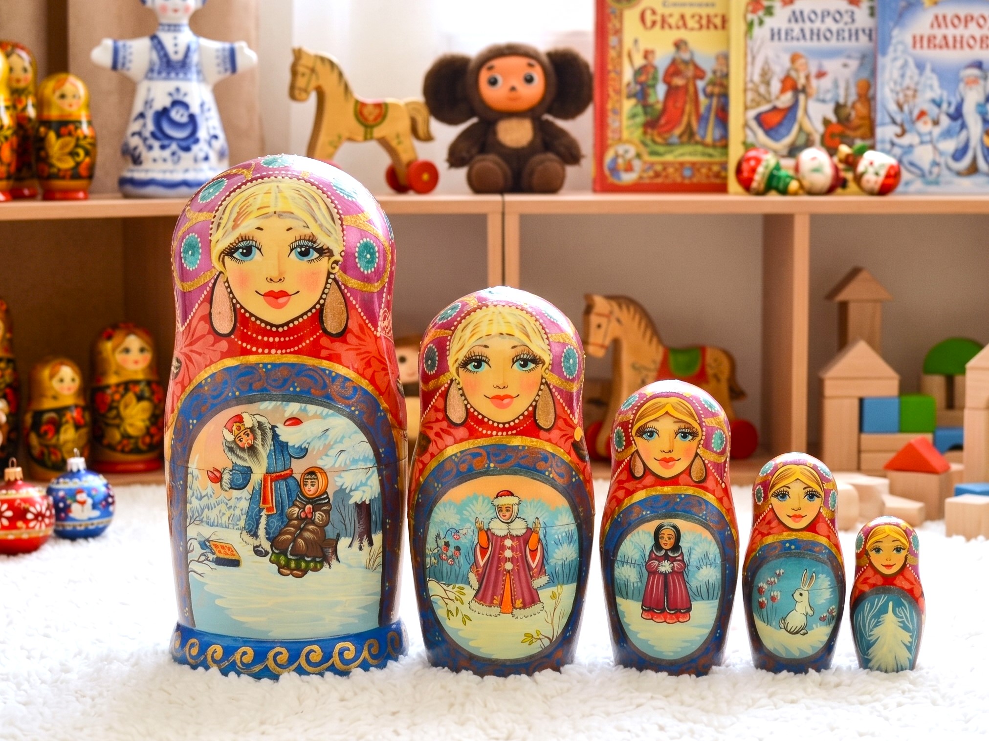 ♥ Bộ búp bê Nga Matryoshka dòng cao cấp 5 lớp cao 18cm hoa văn chuyện cổ tích “Nàng công chúa Tuyết” rất đẹp và dễ thương:
