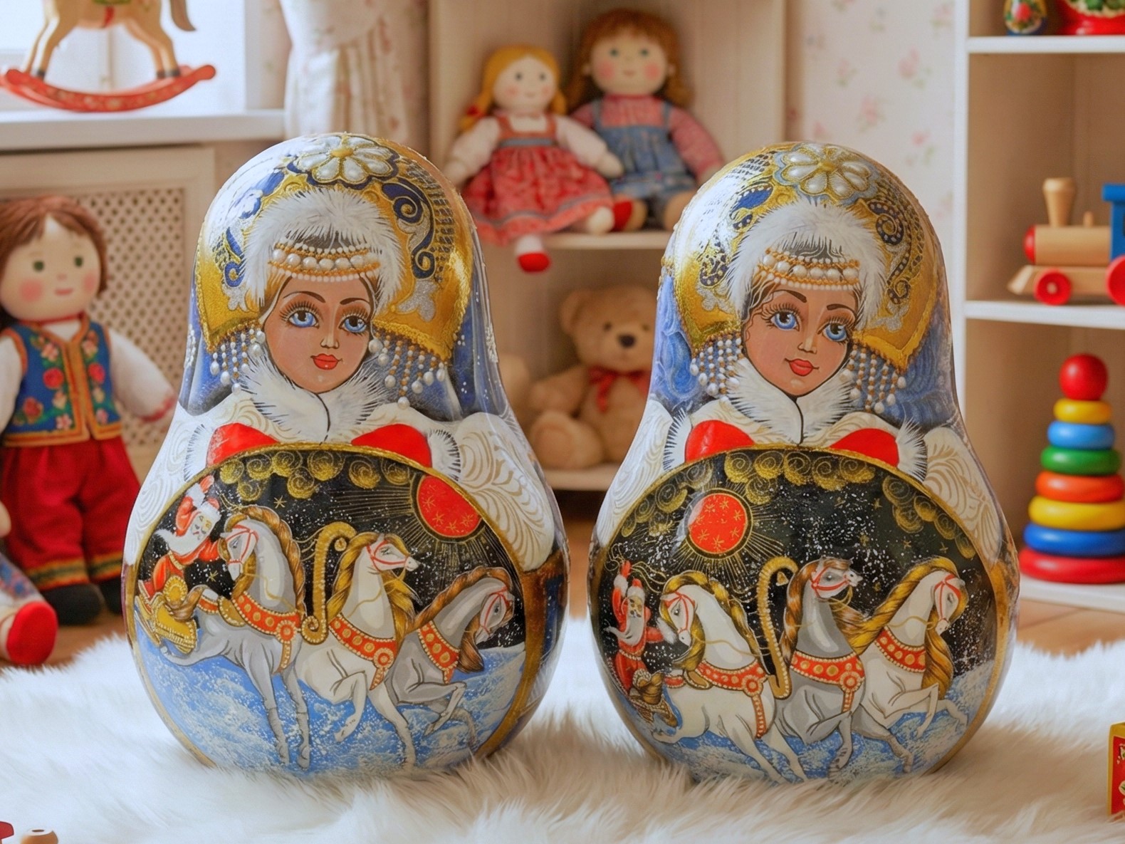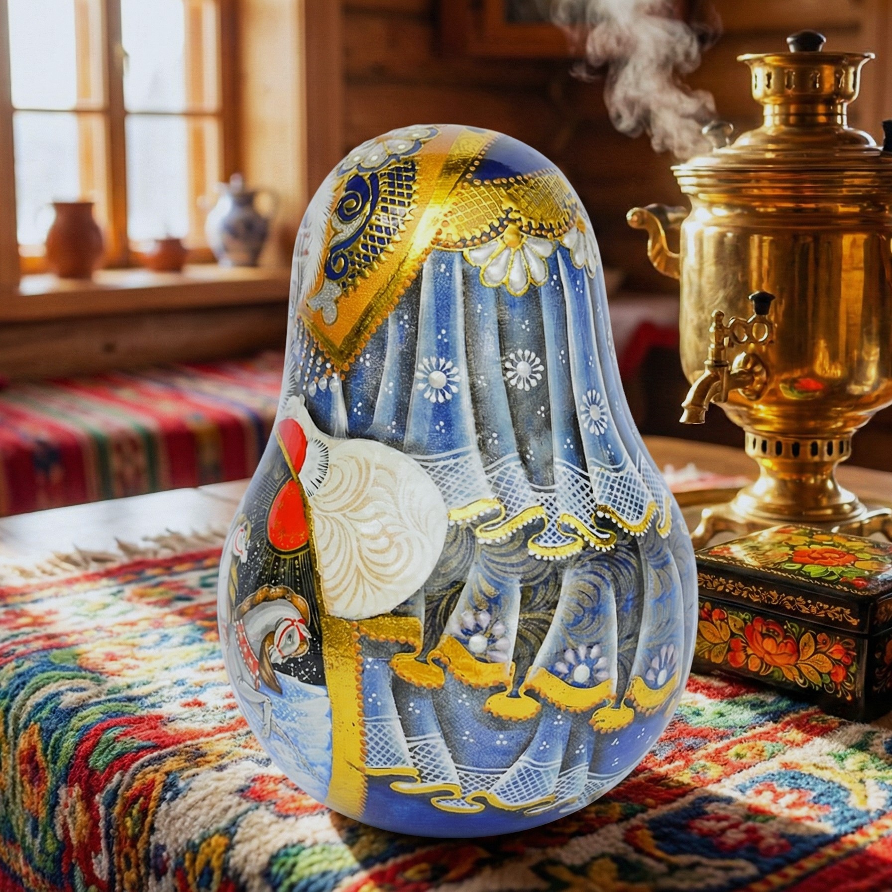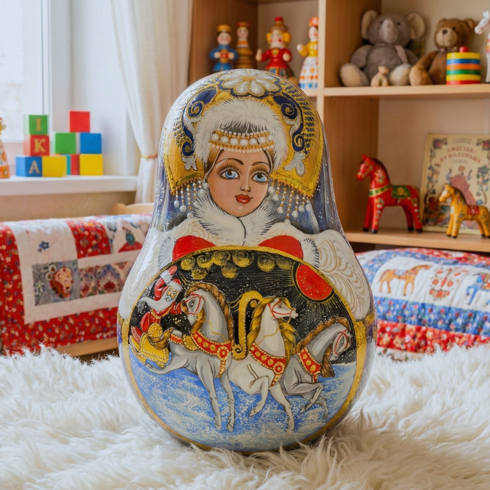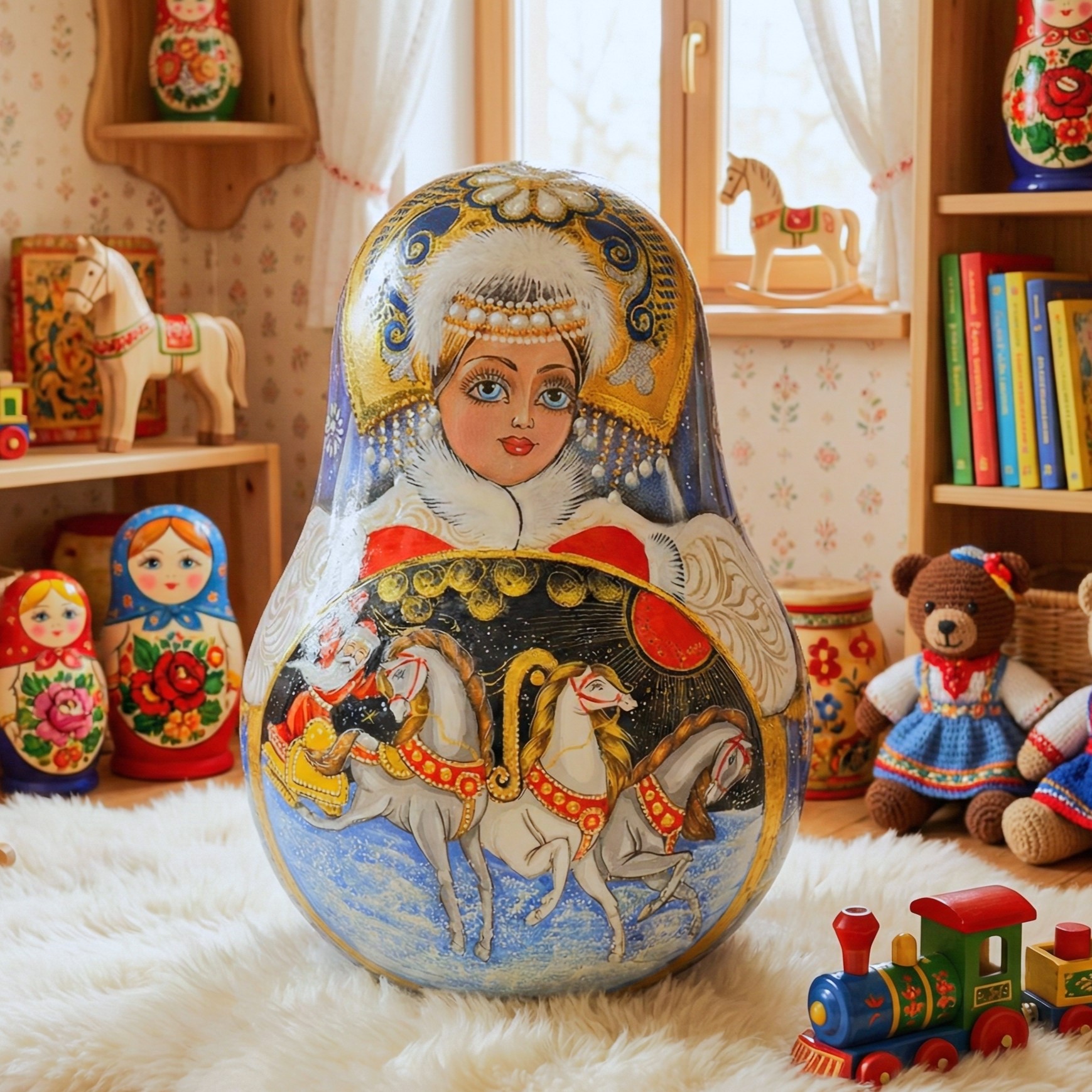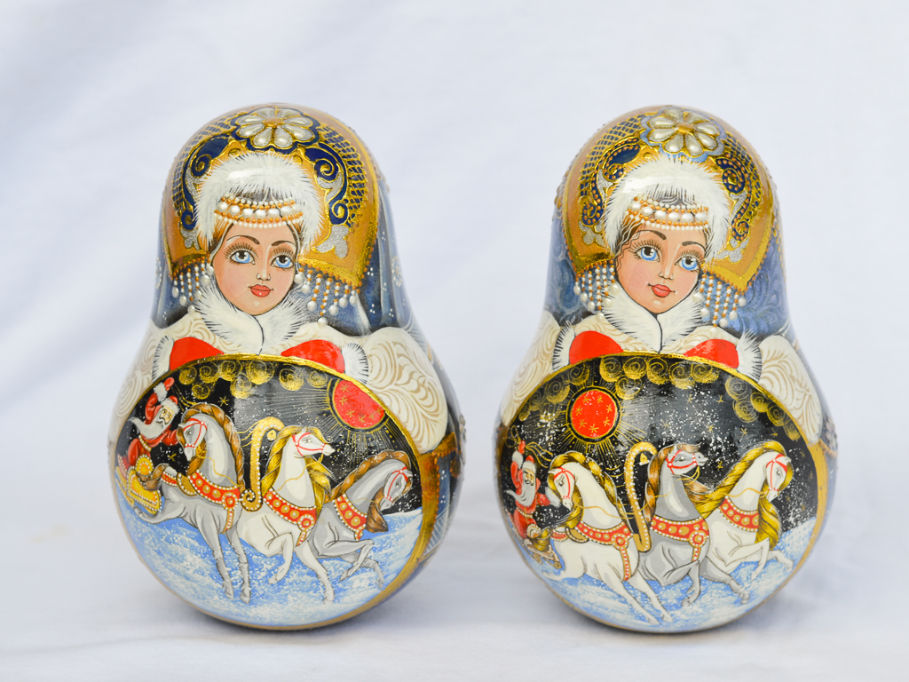💝 Búp bê lật đật có hoa văn công chúa truyền thống Nga. Công chúa có khuôn mặt xinh đẹp, trang phục mùa đông trang nhã với nhiều chi tiết, áo lông trắng, tay áo thêu màu bạc và tím kiểu Nga, đồ trang trí truyền thống, mũ kokoshnik và đồ trang sức, thiết kế rất chú ý đến từng chi tiết!