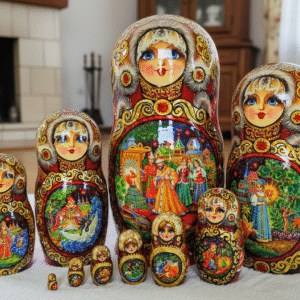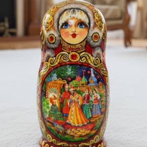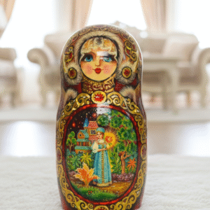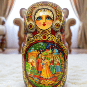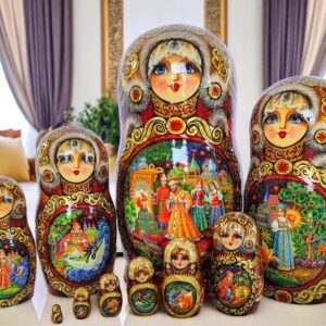Phần tuyệt vời nhất của những con búp bê MATRYOSHKA là những bức tranh được vẽ bằng tay rất đẹp và độc đáo. Các bức tranh của bộ Matryoshka này được vẽ câu chuyện cổ tích dân gian về vua Saltan – một câu chuyện cổ tích dân gian mang đậm văn hóa slavo. Các câu chuyện cổ tích được vẽ thủ công theo phong cách hội họa truyền thống “Fedoskino” cực đẹp và độc đáo, nét đến từng chi tiết nhỏ nhất.
